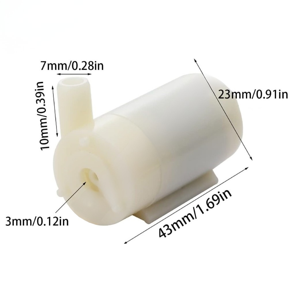 5V Mini Dalgıç Su Pompası, DC 2.5V – 6V aralığında çalışan, kompakt ve düşük güç tüketimli bir su transfer pompasıdır. Saatte 80 – 120 litre akış kapasitesi ile küçük ölçekli sirkülasyon ve sıvı transfer uygulamaları için idealdir.