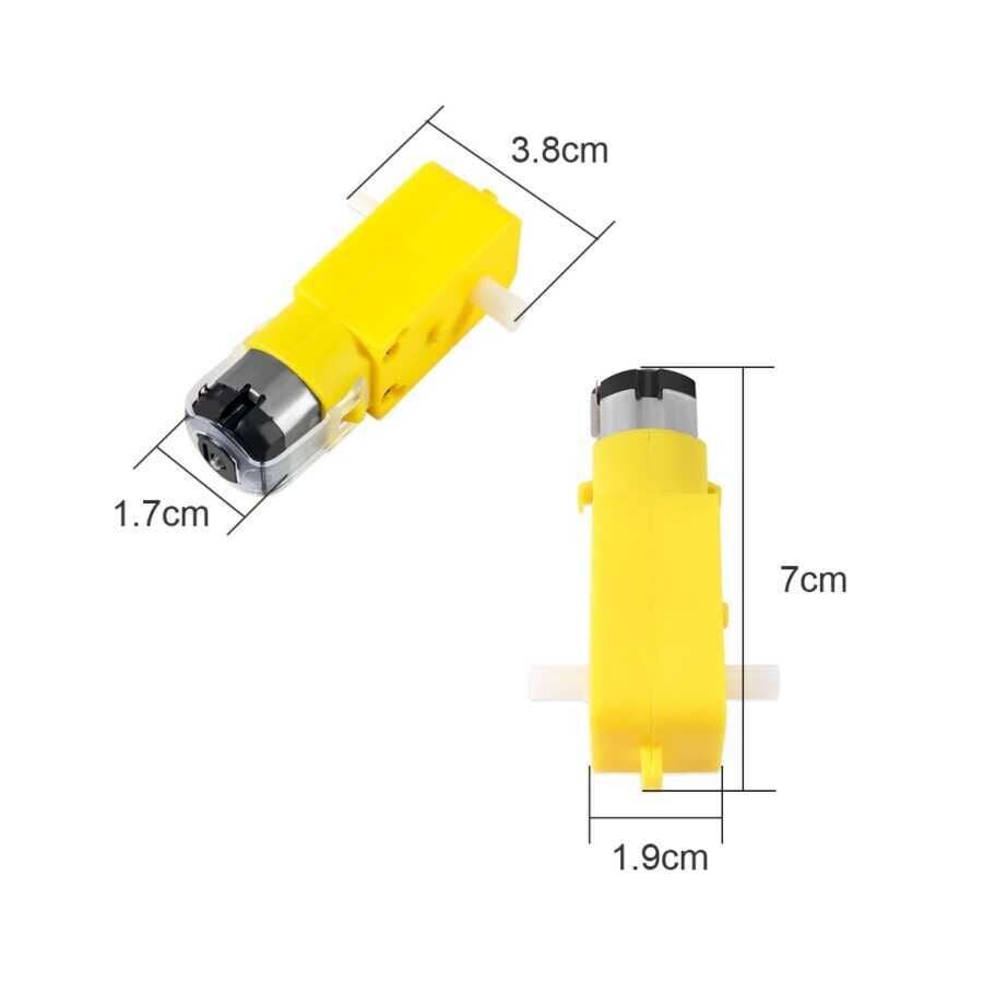 6V 250RPM Sarı Redüktörlü Motor, robotik projeler ve hobi uygulamaları için özel olarak tasarlanmış, plastik dişli kutusuna (redüktör) sahip DC motordur. Uygun fiyatlı ve yüksek torklu yapısı sayesinde özellikle çizgi izleyen ve engel aşan robot projelerinde en çok tercih edilen motorlardan biridir.